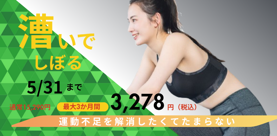 いろいろあるけど、今だけは最大3か月間TOPコースが6,800円(税込7,480円)で施設は使いたい放題!